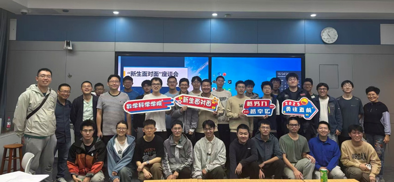 为助力研究生新生尽快适应科研节奏、明确发展方向,2025年10月15日,数学科学学院研究生基础第一党支部与研究生会联合举办了“新生面对面”座谈会。本次活动邀请了翟建梁、刘党政、傅孝明、章俊彦、吴天、张伟、万宏艳等多位老师,与同学们展开深入交流,分享科研经验与职业规划见解。本次活动为数学科学学院研学论道系列第35期。