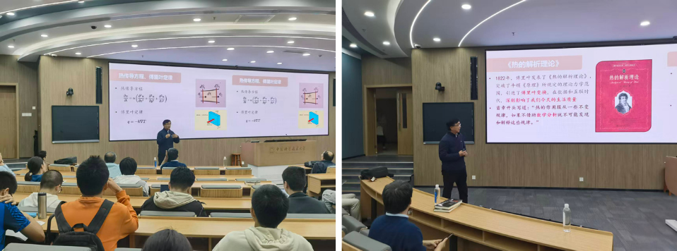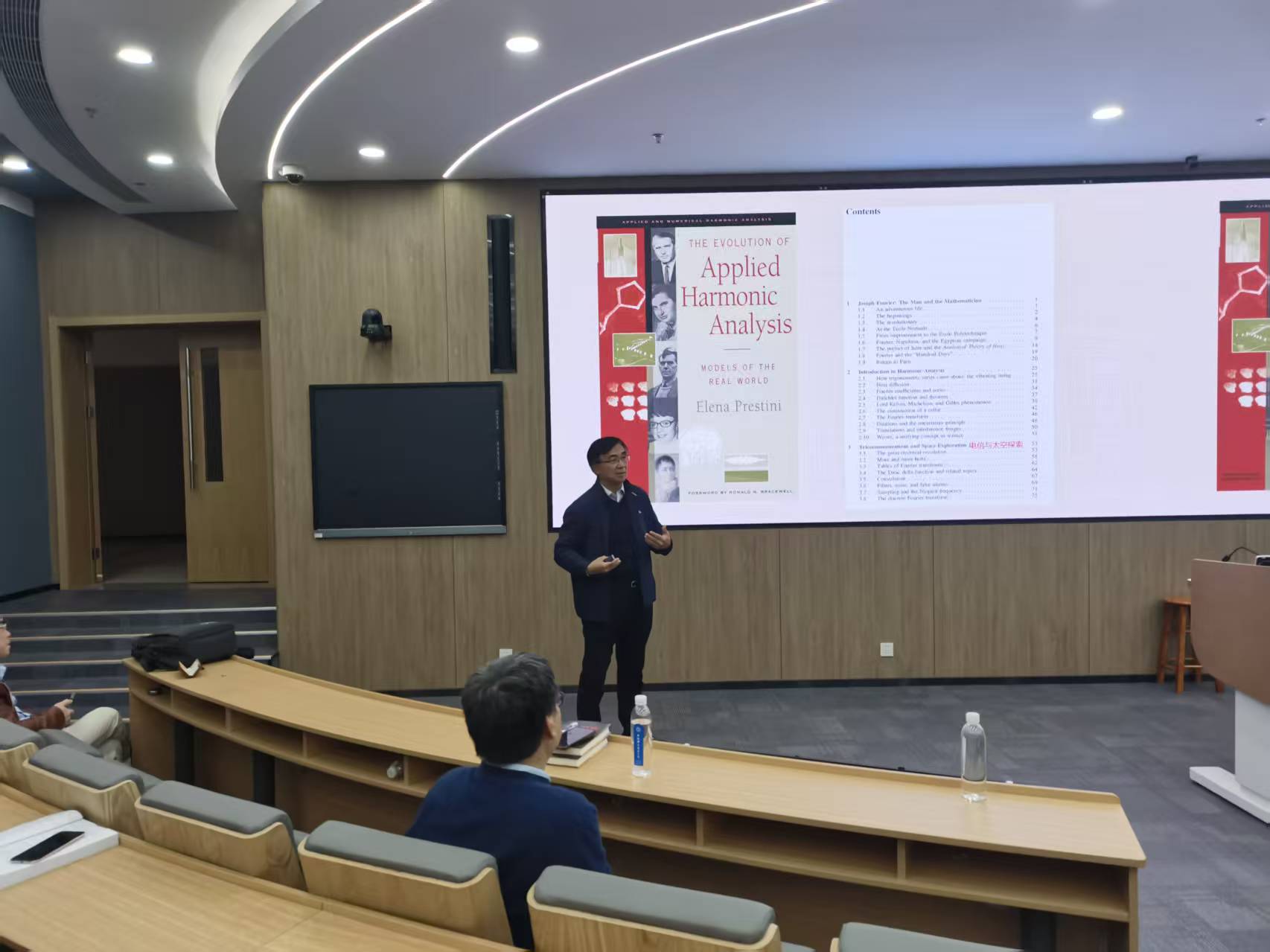 汤涛院士以傅里叶级数的历史归属问题为引,生动讲述了傅里叶的生平与其学术贡献。傅里叶在担任埃及总督期间,对热学产生浓厚兴趣,并于业余时间推导出热传导方程。在此基础上,他进一步提出傅里叶级数,为该领域奠定了重要理论基础。傅里叶级数的诞生,深刻影响了近两百年来的科学发展,尤其在信号传输、全息成像及傅里叶光学等领域发挥了关键作用,极大推动了现代科技的进步。报告尾声,汤涛院士还分享了他眼中深刻改变人类生活的数学应用实例。汤涛院士以深厚的学术素养,系统梳理了傅里叶分析近两百年的发展脉络。整场讲座内容详实、深入浅出,不仅加深了同学们对傅里叶分析的理解,也让大家切实感受到数学在推动生产力发展与科技进步中的重要作用。互动环节中,现场师生踊跃提问。