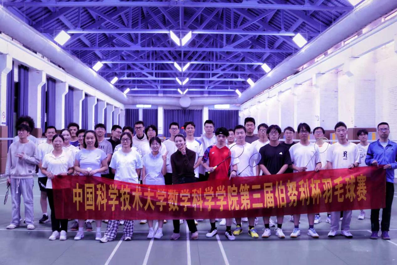 2025年11月22日下午两点至六点,中国科学技术大学数学科学学院在东区羽毛球馆成功举办了第三届“伯努利杯”羽毛球赛。本次活动由中国科学技术大学数学科学学院团委主办,中国科学技术大学数学科学学院研究生会与中国科学技术大学数学科学学院学生会共同承办。比赛旨在进一步丰富校园文化生活,促进学院同学之间的交流合作,同时为羽毛球爱好者提供展示风采的平台。本届赛事共设男子单打、女子单打、男子双打与混合双打四个项目,吸引了近四十余名老师和同学报名参赛,比赛现场气氛热烈,活力四射。
