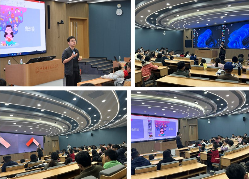随后,研究生孙天阳带领大家走进传统益智玩具的世界,围绕鲁班锁展开深度分享。他从历史渊源、结构构造讲到榫卯智慧,用通俗易懂的语言拆解传统技艺背后的数学原理。在动手体验环节,孩子们踊跃拆解、拼装鲁班锁,在反复尝试和互助协作中,切身体会榫卯结构环环相扣、无需钉胶却稳固牢靠的精妙之处。此外,活动现场还设置了3D 打印知识科普与互动问答,激发了孩子们对现代制造技术的浓厚兴趣。