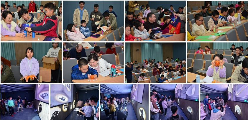 活动现场还设置了多项创意数学实践体验:方清老师介绍了纸模艺术,讲解如何通过裁剪与弯曲平面纸张,实现分片可展逼近三维模型的数学原理;翟晓雅老师带来《探秘超材料机器人》科普讲解,介绍超材料的概念与应用,并带领大家开展折纸与承重挑战,在折叠与搭建中感受几何结构之妙;程元元老师组织橘皮成形艺术体验,指导孩子们将平面模型映射到橘皮表面,在趣味中理解曲面展开与几何映射;吴康老师则展示了纸片光影与魔镜艺术,通过实物演示和动手操作,让孩子们见证光与几何结合的神奇效果。