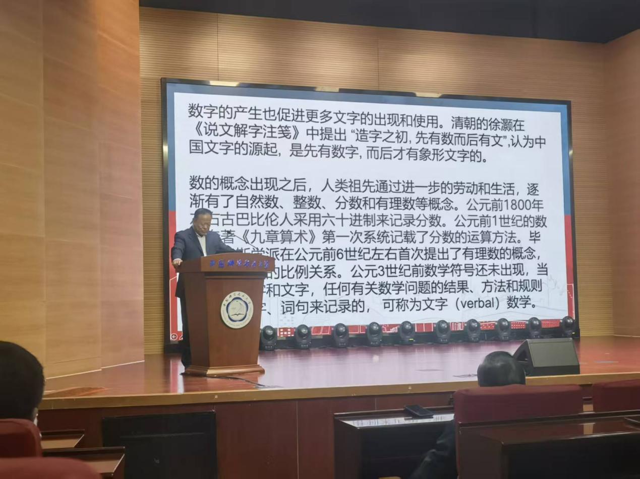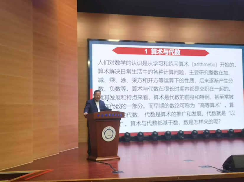 讲座开篇,张继平院士从人类文明源头切入,追溯算术与代数的发展脉络。他指出,数的诞生是人类文明的重要起点,从原始 “数觉” 到计数行为,从实物记数到阿拉伯数字的通用,人类完成了从具体到抽象的关键跨越。他详细介绍了丢番图、花拉子米、韦达、笛卡尔等学者的贡献,特别回顾了李善兰翻译《代数学》、创设 “代数”“函数”“方程” 等中文数学名词的重要意义,阐明代数即‘以字代替数’,是算术的推广与飞跃,也是人类思维抽象化的标志性成果。