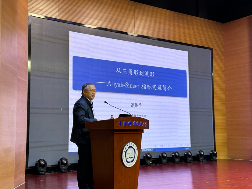 4月14日,中国科学院院士、南开大学张伟平教授做客瀚海数学大讲堂,为师生带来《从三角形到流形-Atiyah-Singer指标定理简介》的学术报告。本次报告由数学科学学院执行院长黄文教授主持。