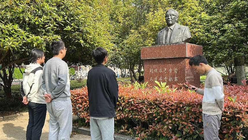 2026年4月4日,中国科学技术大学数学科学学院学生会与芳草社数院青年志愿者协会于东校区联合举办清明节祭扫活动,组织师生代表一同瞻仰华罗庚先生、杨振宁先生以及郭沫若先生雕像,深切缅怀老一辈科学家和教育家矢志报国、勇攀高峰的崇高精神。