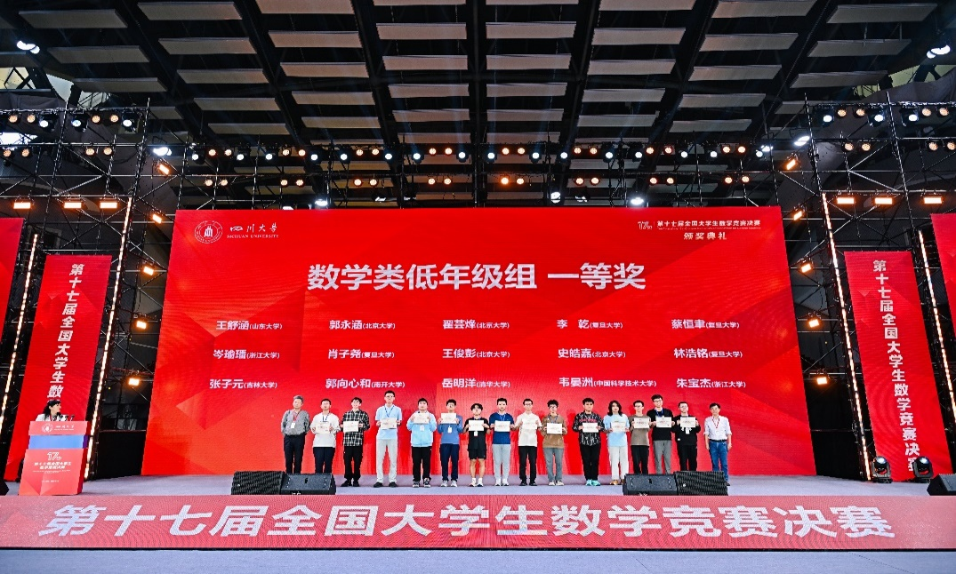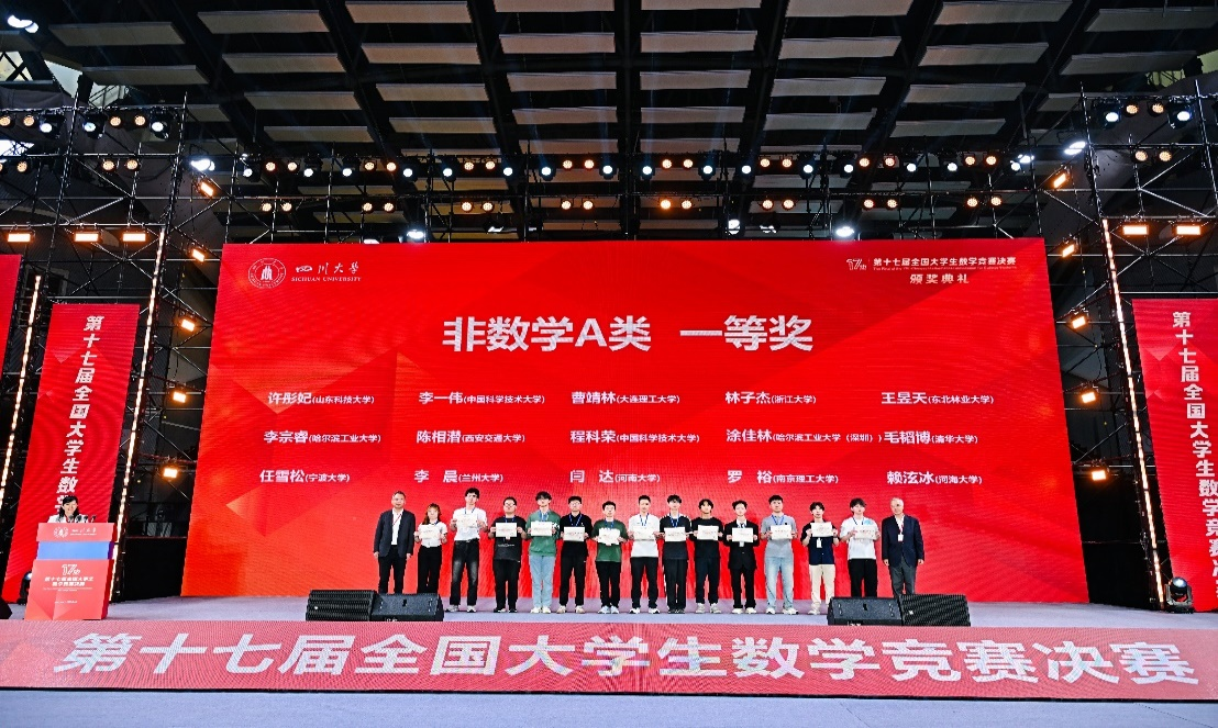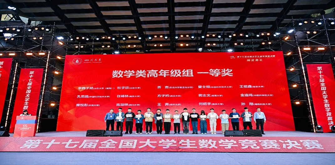 2026年4月18日,第十七届全国大学生数学竞赛决赛在四川大学圆满落幕。我校在本届竞赛中表现优异,共22名学子进入决赛,最终荣获一等奖13项、二等奖8项、三等奖1项。其中,一等奖总数及专业组一等奖人数均位列全国高校第二。亮眼成绩的背后,凝聚着同学们的刻苦钻研和不懈努力,饱含着全体竞赛教练员的悉心教导和无私奉献,也离不开数学学院领导的高度重视、科学谋划和有力保障。