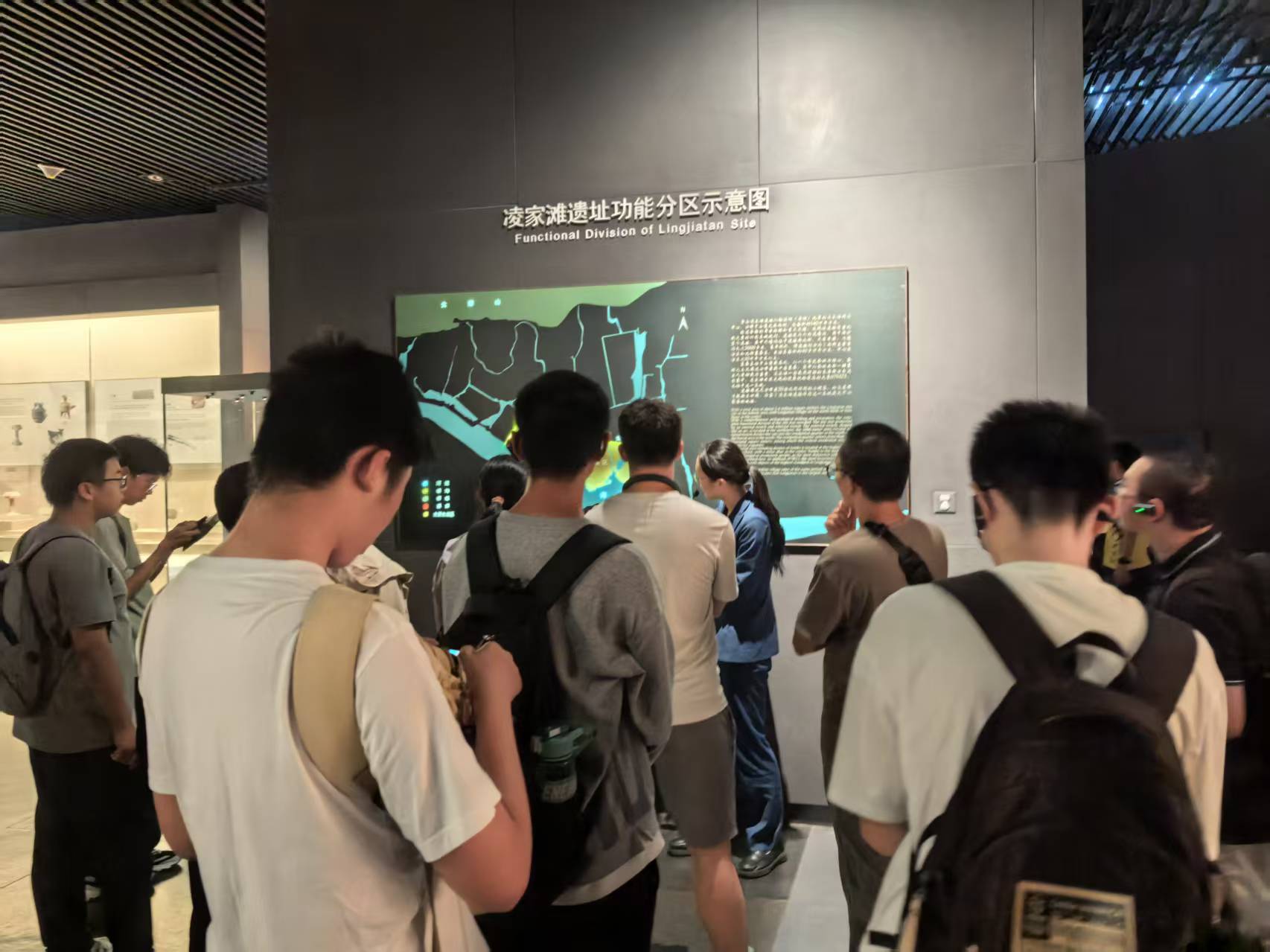 活动伊始,在讲解员的引导下,同学们参观了安徽文明史(一)(二)展厅。从旧石器时代的原始痕迹,到新石器时代凌家滩文化中精美的玉制品,安徽文明的第一缕曙光在史前展厅灿然绽放;步入青铜时代,厚重的铸客大鼎、神秘的鄂君启金节,以及形似现代路由器的云纹五柱器,共同奏响了钟鸣鼎食的礼乐华章。这段跨越千年的旅程,让大家深刻感受到安徽大地深厚的历史积淀与先民惊人的智慧与创造力。