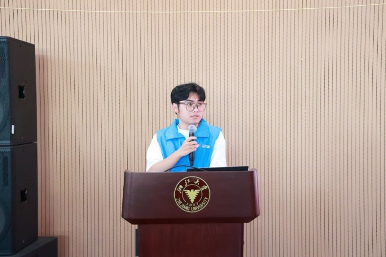 7月27日,由中国核工业集团有限公司与团中央青年志愿者行动指导中心联合主办的2025年“两弹一星”精神大学生志愿者联合宣讲活动在浙江大学举行。当天下午,数学科学学院“两弹一星”精神宣讲团成员、2023级本科生刘浩东同学受邀在会上作交流分享。