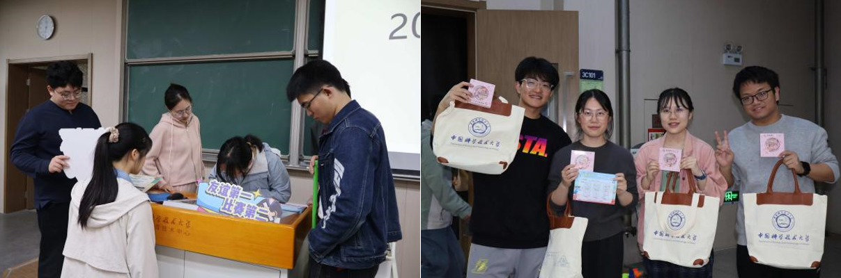 经近四小时激烈角逐,工作组依据各队集章卡总积分统一排名。前三名队伍喜获"科大牛U盘",第四至第八名队伍收获实用双肩包,第九至第十八名队伍获得精美金属流沙冰箱贴。此外,活动设置集赞福利环节,转发推文并集齐指定赞数的同学现场领取了小玩偶和精美鼠标垫。