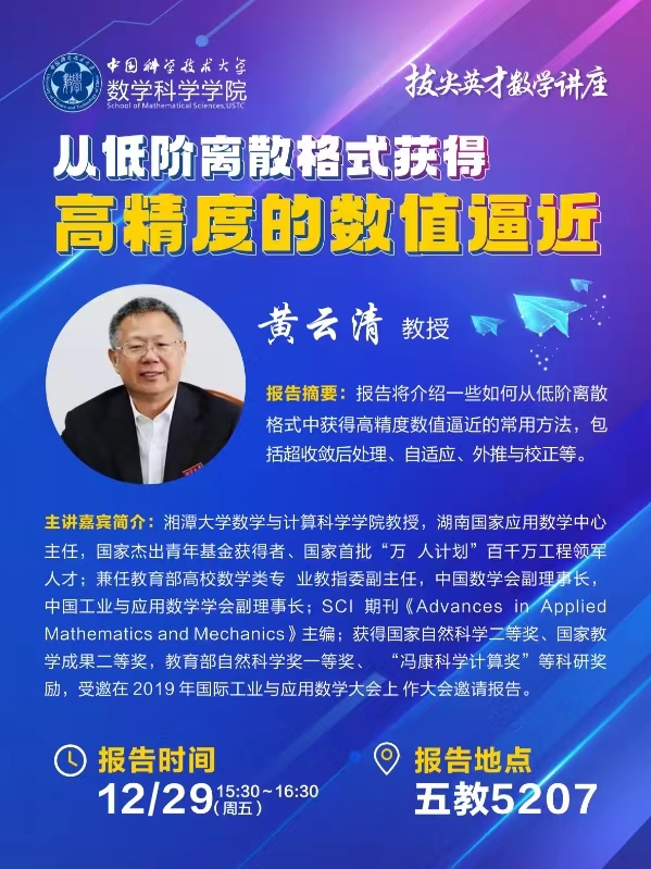 12-29【黄云清】五教5207 拔尖英才数学讲座系列报告之三