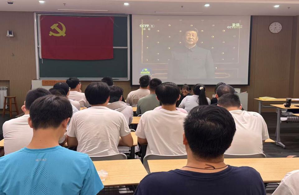活动开始,全体同志集中观看阅兵视频。镜头中,铿锵的步伐、精良的装备展现着新时代国防和军队建设的辉煌成就,同志们深切感受到国家的强大与军队的威严,进一步坚定了听党话、跟党走的信念,汲取了砥砺前行的精神力量。
