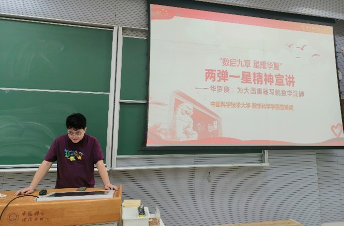 学院“两弹一星”精神宣讲团成员以 “数启九章,星耀华夏”为主题,围绕我校数学系首任系主任、中国科学院院士华罗庚的爱国情怀开展“两弹一星”精神宣讲,聚焦华老先生放弃海外优厚待遇、两度毅然归国的科研人生。华老先生创立“优选法”和“统筹法”、推动中国早期计算机研制,为大国重器的诞生提供了独特的“数学注脚”,他的事迹让“两弹一星”精神从抽象概念转化为数院学子可感可及的榜样力量。