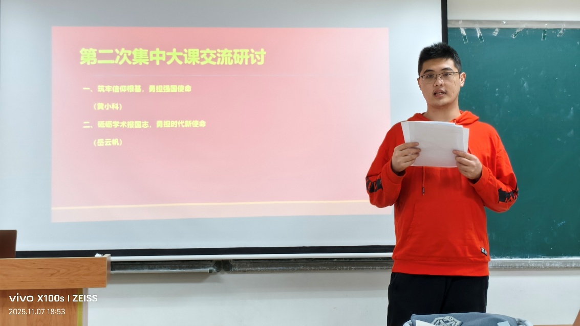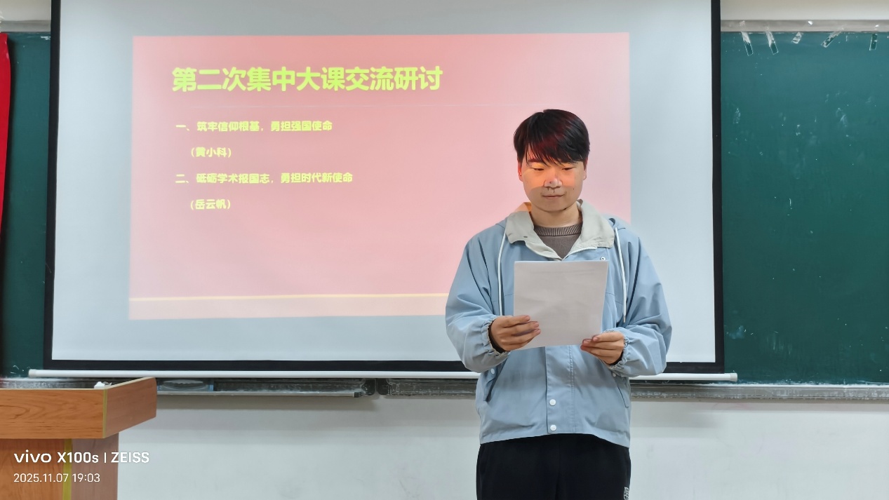 时代洪流奔涌向前,复兴征程使命在肩。第二次集中大课和二十届四中全会精神为支部同志带来了理论滋养,希望同志们能将学习所得转化为治学报国的实际行动,以此次学习为新的起点,继续深学细悟、融会贯通,在新时代的征程中,以真才实学服务人民,以创新创造贡献国家,为实现中华民族伟大复兴的中国梦贡献青春的智慧和力量!
