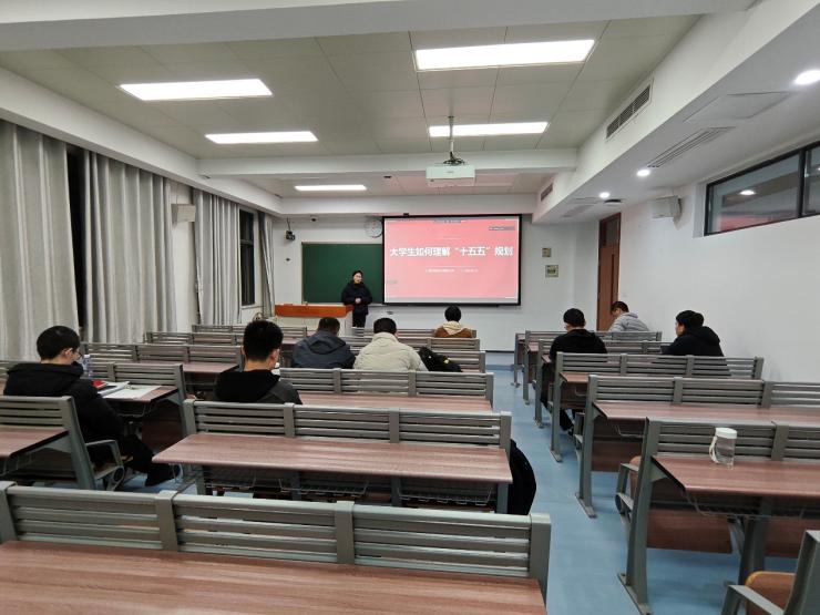 班会第二部分,郑老师带领同学们深入学习国家“十五五”规划。2026年是“十五五”规划的开局之年,作为新时代的青年博士生,理解国家战略、把握时代脉搏是成长成才的重要一课。郑老师系统介绍了“十五五”规划的编制背景、主要内容和核心目标,从国际环境、国内发展需求及政策延续性等角度切入,详细解读了经济发展、创新驱动、民生福祉、绿色低碳、安全保障等多个维度的指标体系。特别是在“科技创新与教育”板块,规划明确提出要加大研发投入、推动高等教育内涵式发展、支持创新创业、发展数字经济等,这些内容与博士生群体的学习科研、职业发展息息相关。